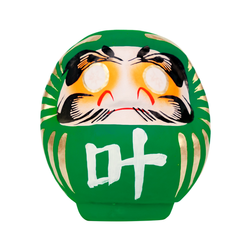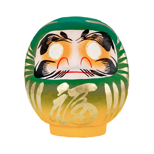 【 色 】 緑 色【サイズ】 高さ約15cm※だるまの背中に3文字までお名前を書き入れ致します。書き入れる文字色は黒文字のみです。 (『カートに追加』の下の入力欄にてご指示下さい) -----------------------------------金粉を使用した縁起の良い金だるまです。お選...